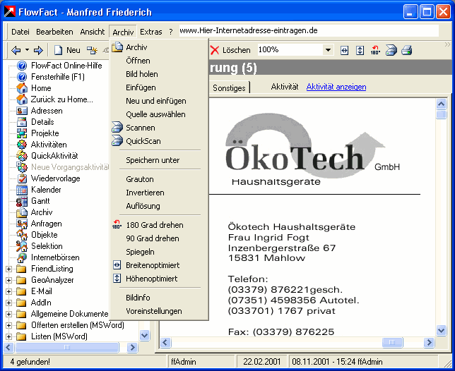 selbstverständlich auch bei Archiv-Dokumenten aktiv! FLOWFACT verwendet