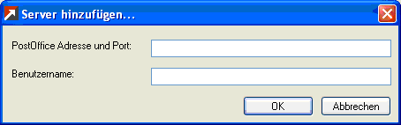 Um einen Terminaustausch mit Benutzern anderer Postoffices zu synchronisieren, muss die Adresse mit "Soap Port" und ein Benutzername für jedes weitere Postoffice eingegeben wer-den. Die Schaltfläche "Hinzufügen" öffnet eine Dialogbox zur Eingabe der Postoffice-Adresse, Port und Benutzernamen (siehe folgende Abbildung). Dabei ist zu beachten, dass unterschied-liche SOAP-Ports verwendet werden müssen, sobald sich mehrere Postoffices auf dem gleichen Server befinden. Ansonsten reicht der Standard SOAP-Port: 7191.