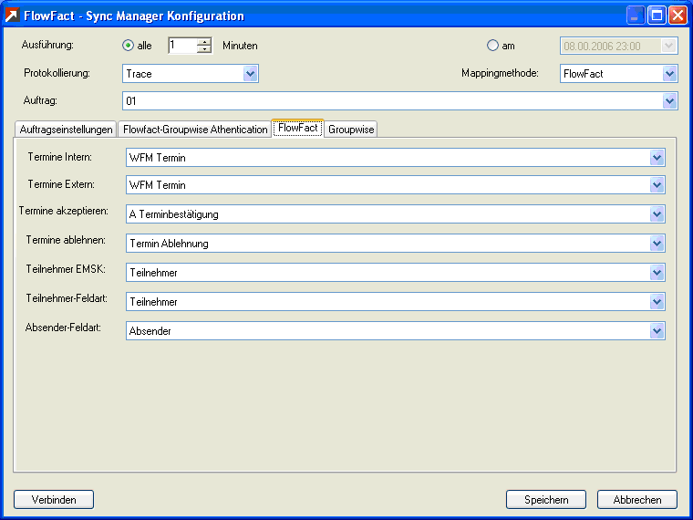 Der Erzeuger eines Termins in FlowFact wird in GroupWise als Absender interpretiert.