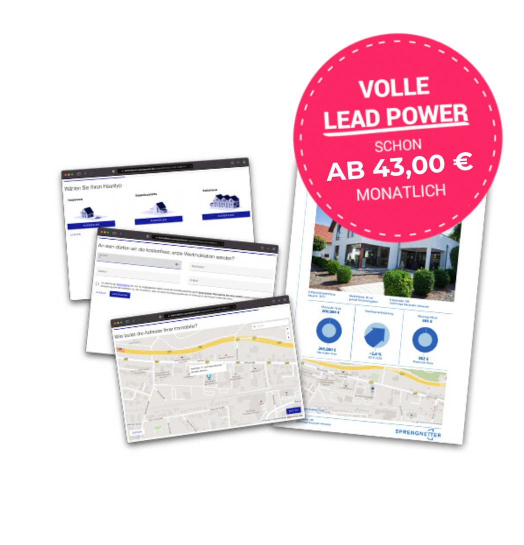 Mit Sprengnetter Lead erhalten Sie einen smarten Leadgenerator auf der Immobilienwebsite, von dem Ihre Kund:innen unmittelbar profitieren. Zugleich können Sie auf Basis der selbständig durchgeführten Werteinschätzung die Geschäftsbeziehung konzentriert weiterentwickeln.